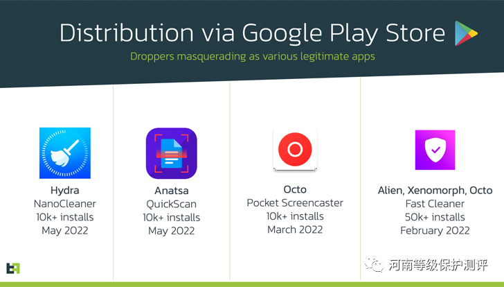 伴随着这一趋势的是,在 Google Play 商店中不断发现新的 dropper 应用程序,这些应用程序以看似无害的生产力和实用程序应用程序为幌子分发恶意软件:
