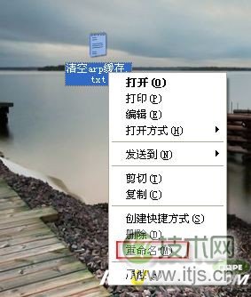 3、选择这个“清空arp缓存文档”鼠标右键,在出现的右键菜单栏中选择“重命名”,如图8所示: