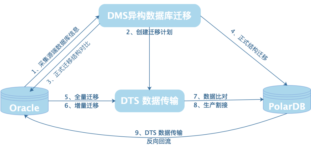 计算与存储分离,使用共享分布式存储,满足业务弹性扩展的需求。极大降低用户的存储成本。读写分离,一写多读,PolarDB引擎采用多节点集群的架构,集群中有一个主节点(可读可写)和至少一个只读节点(最大支持15个只读节点)。写操作发送到主节点,读操作均衡地分发到多个只读节点,实现自动的读写分离。基于K8S形态部署,提供分钟级的配置升降级,秒级的故障恢复,全局数据一致性和完整的数据备份容灾服务。集中式架构,不需要进行分布式架构相关考虑设计,和原有使用习惯保持一致,性能不低于原有Oracle数据库。高度兼容Oracle,应用基本上不需要做SQL语法调整。②迁移方法