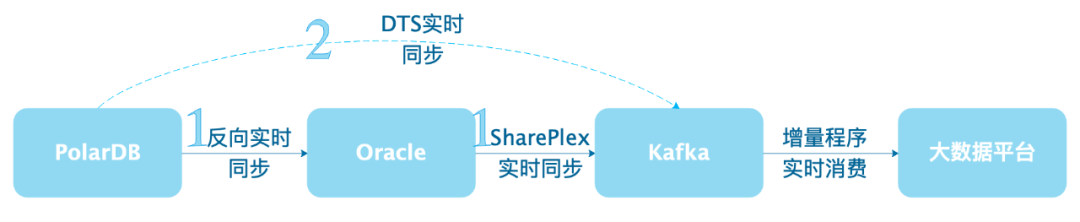 增加PolarDB到Oracle的反向实时同步,原有Oracle到Kafka同步链路不变,避免数据库切换带来太大的变动;参考SharePlex的格式对DTS进行定制化开发改造,待验证充分后,直接替换掉SharePlex原有同步链路。③主要挑战