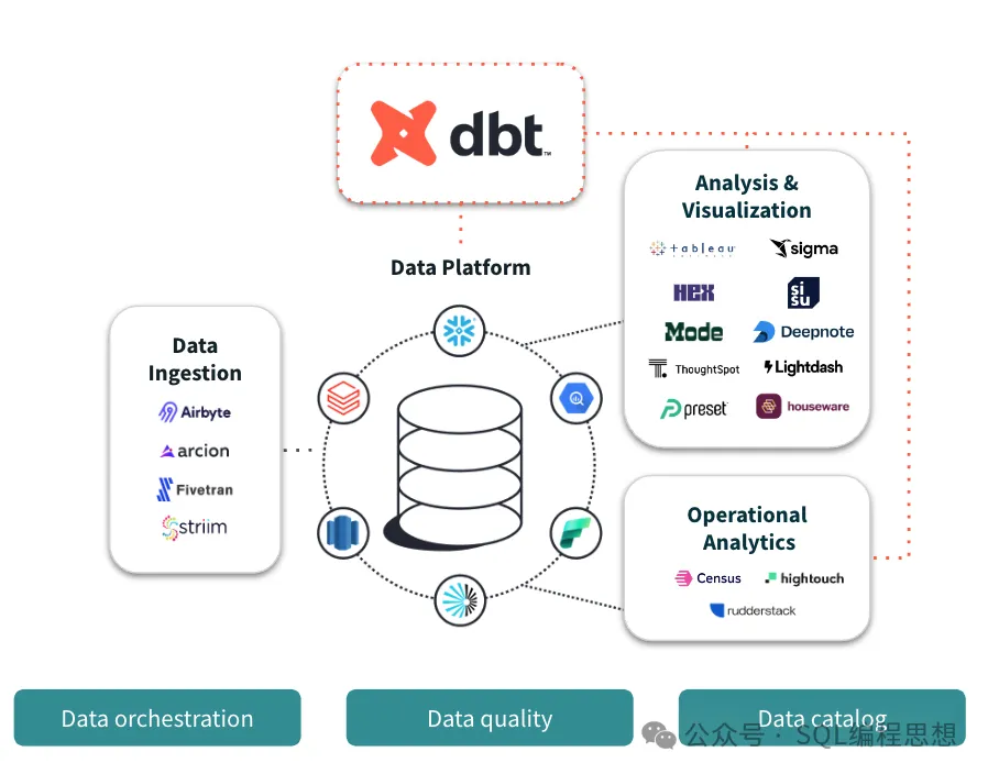 简化开发,通过编辑模块化的查询语句或者 Python 代码,避免了数据转换过程中重复的表创建和维护;动态 SQL,支持使用 Jinja 模板实现动态 SQL(如变量、循环、条件语句),源码库提升代码复用性;定义模块顺序,使用 ref 函数基于其他模型定义新的模型,实现模块之间的依赖和执行顺序;文档生成,支持自动生成项目和数据文档,可视化表与字段的依赖关系;模型测试,确保转换模型的准确性和完整性;包管理,模块化代码管理和共享;种子文件,通过 CSV 文件加载参考表、配置表等静态数据;数据快照,通过记录数据的历史状态变化,支持数据回溯。dbt 支持连接各种数据库、数据仓库、数据湖以及查询引擎,包括 AlloyDB、Apache Spark、Athena、Azure Synapse、BigQuery、Databricks、Dremio、Glue、IBM Netezza、Materialize、b2b信息网Microsoft Fabric、Oracle、PostgreSQL、Redshift、Snowflake、Trino、Teradata、Clickhouse、CrateDB、Databend、Doris、DuckDB、Hive、DB2、Impala、MySQL、SQL Server & Azure SQL、SQLite、Starrocks、TiDB、TimescaleDB、Spark 等数据平台。