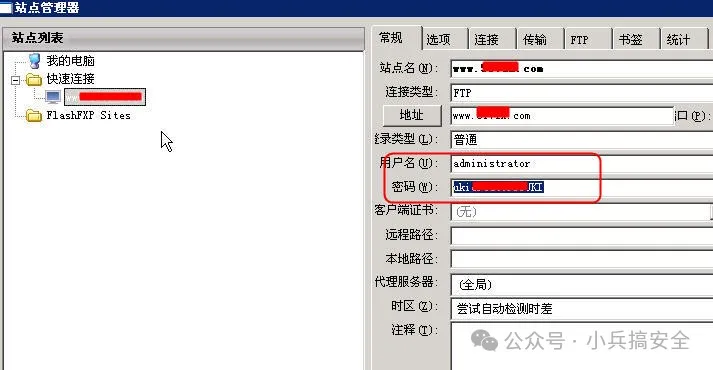 打开站点管理器,在快速连接中可以发现存在一个Ftp地址,打开后,将鼠标移动到密码处直接获取其密码“ukicreator86UKI”,如图10所示,该密码看起来像服务器管理密码。