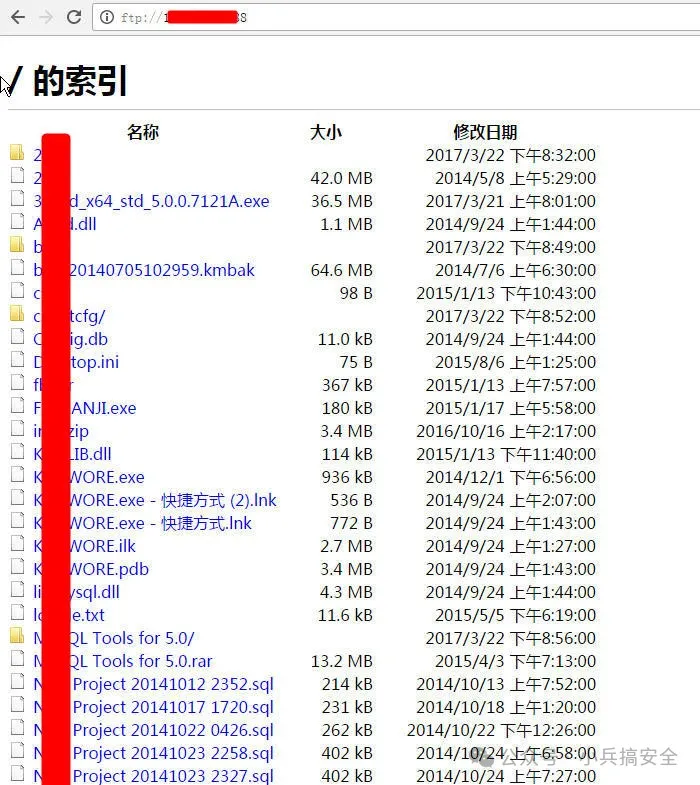 直接ftp连接,如图11所示,可以直接查看其默认配置的文件,有些文件可以直接下载和查看,说明存在ftp信息泄露。