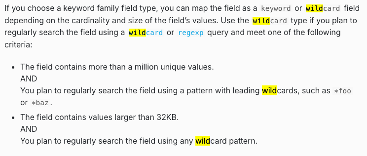 - ignore_above的默认值通常为256个字符,这意味着任何超过256个字符的字符串将不会被索引或存储。