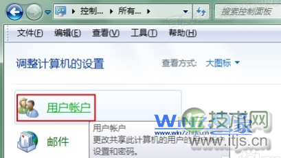 2、快捷然后在控制面板中选择点击“用户账户”选项;