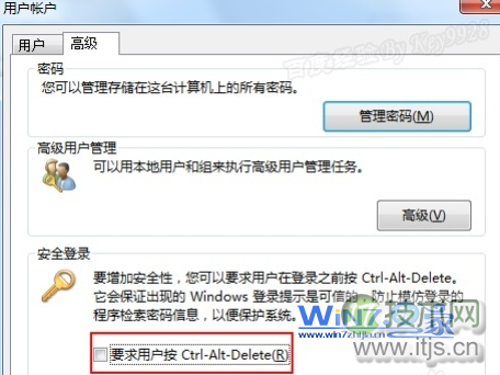 4、入密接着在弹出来的消开用户账户对话框中,切换到“高级”选项卡,机按键直接显然后将安全登录下方的香港云服务器快捷“要求用户按Ctrl+Shfit+Del”前面的勾取消掉,点击确定即可。示输