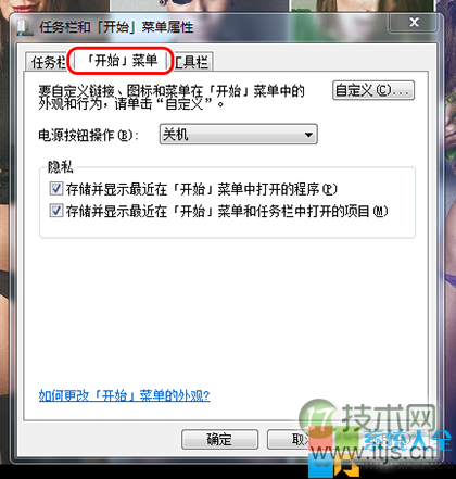 2.在“任务栏和开始菜单属性”,启最选中“开始菜单”摘要。系项目项目