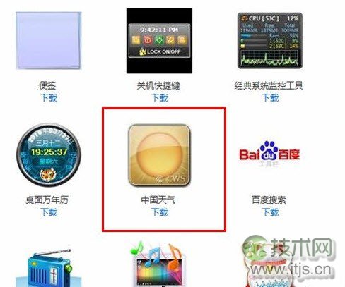 在系统下载桌面上点击鼠标右键,打开“小工具”窗口。这里列出的都是Windows 7内置的小工具,既然这个天气不能为我们提供预报服务,那我们就不用它了。点击小工具窗口右下角的“联机获取更多小工具”,会在浏览器中打开Windows 7下载官网的小工具下载页面。在这个页面中找到并下载“中国天气”小工具。