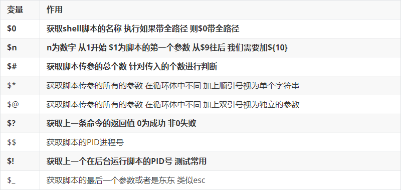 # cat test.sh #!/bin/bash echo $1 $2 $3 echo $# # sh test.sh 1 2 3 1 2 3 3 # sh test.sh {1..20} 1 2 3 20$? 获取上一条命令的返回值