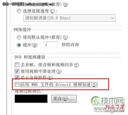 3.取消“启用WMV文件的速降使用DirectX视频加速”,修改,去掉确定。统视