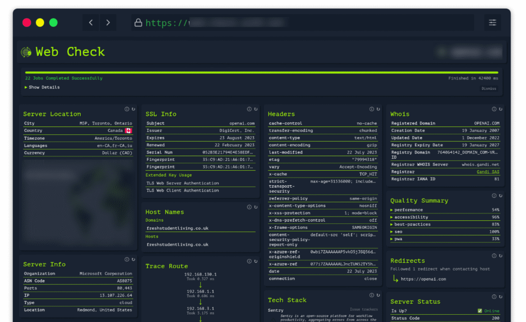 New web-check 让你深入了解一个特定网站的内部运作,发现潜在攻击向量,分析服务器架构,查看安全配置,并了解网站使用的技术。高防服务器