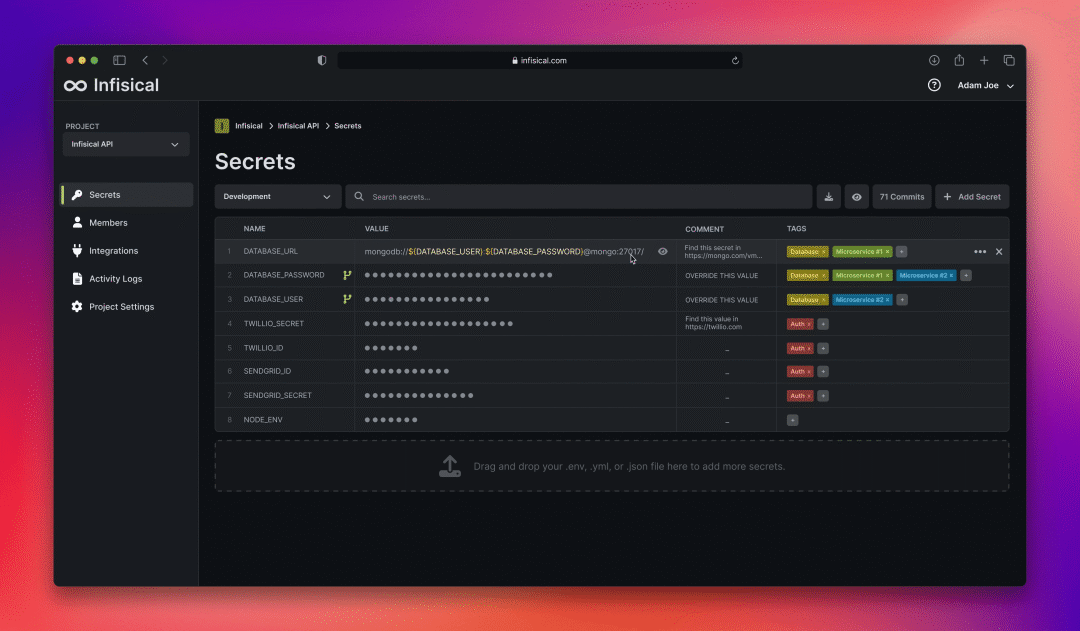 Infisical 是企商汇一个开源的端到端加密平台,可以使用它来集中管理 API 密钥、数据库凭据和配置等秘密信息:可以在团队/基础设施之间同步秘密,并防止秘密泄露。
