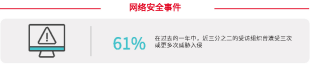 企业频遭入侵,威胁类型多样化。过去一年中,企业面临的安全威胁显著增加,近三分之一(31%)的受访者经历了六次以上的入侵事件,较去年翻了近三倍。尽管恶意软件攻击数量有所下降,但网络钓鱼和商业电子邮件攻击已成为主流威胁,同时,移动安全漏洞和网络入侵技术也被不法分子频繁利用。