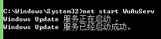 4、继续输入net start WuAuServ,开启windows update服务。