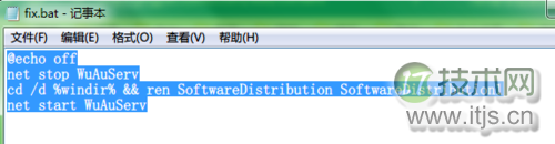 2、用notepad打开fix.bat,把下面的代码复制到bat文件里面。