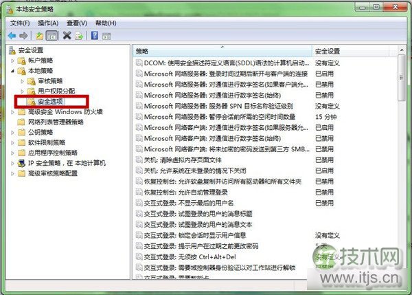 第二步、系系统在“本地安全策略”窗口,我们依次找到“本地策略”“安全选项”并双击该节点。