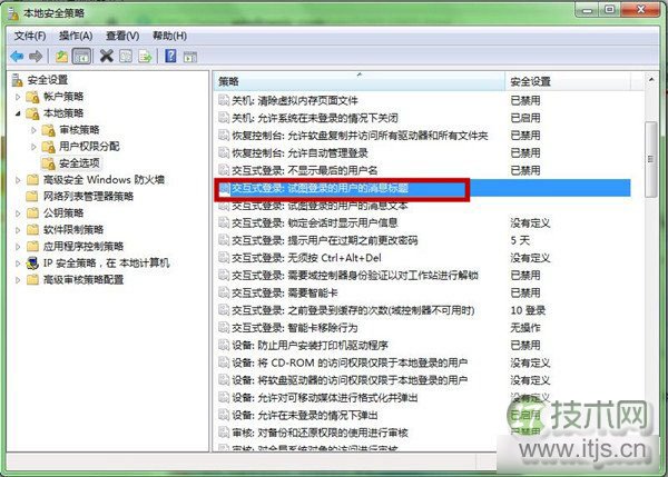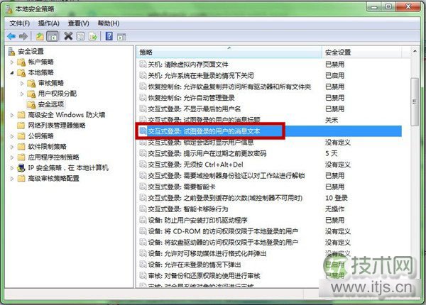 第五步、我们再回到右侧的云服务器提供商窗口中,找到并双击打开交互式登录:试图登录的用户的消息文本”。