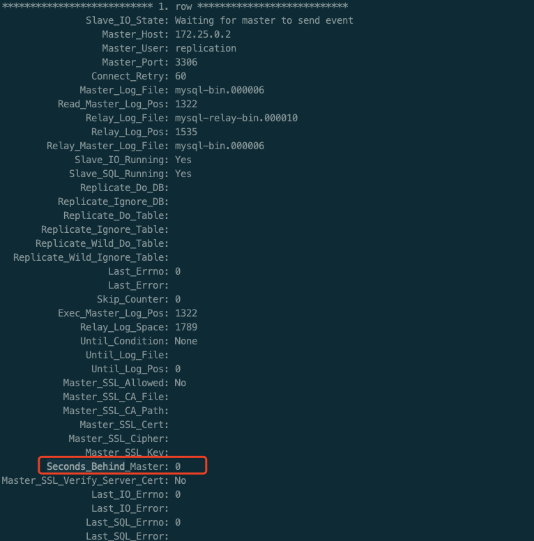 上图返回结果中包含一个seconds_behind_master字段,用于表示当前备库延迟了多少秒。从何