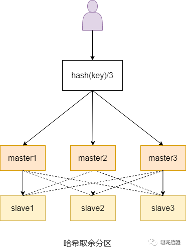 哈希取余分区的优点是分配均匀,使用hash(key)/3的形式让固定的一部分请求存入指定的master,每台master处理一部分数据,起到了负载均衡的效果。