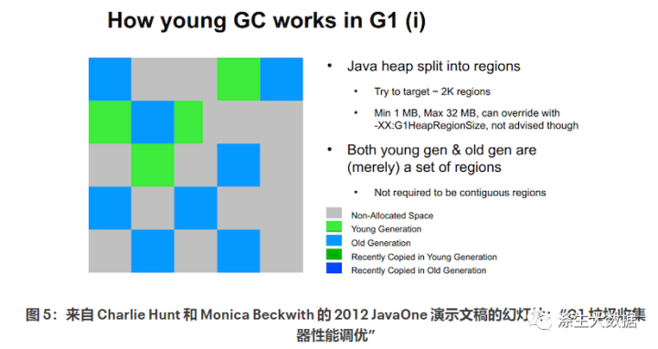 在稳定状态下,jdk7u60 能够将平均暂停时间保持在 369 毫秒左右。比jdk7u21好很多,但是还是达不到我们给的100毫秒的要求。–Xx:MaxGCPauseMillis=100 为了确定我们还能做些什么来获得 1 亿秒的暂停时间,香港云服务器我们需要更多地了解 JVM 的内存管理和 G1(垃圾优先)垃圾收集器的行为。下图显示了 G1 如何进行 Young Gen 收集。