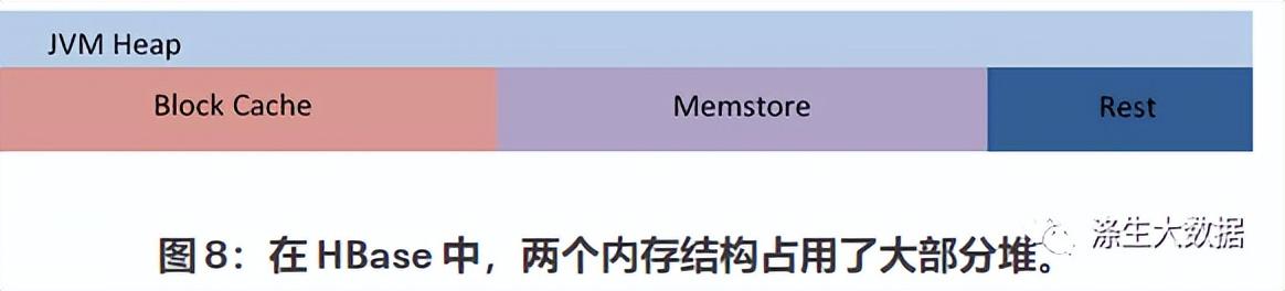 老一代也会变得拥挤。在某个级别(由默认为总堆的 45% 控制)会触发混合 GC。它收集年轻一代和老一代。混合 GC 暂停由年轻代在混合 GC 发生时清理所需的时间控制。-XX:InitiatingHeapOccupancyPercent=? 所以我们可以在 G1 中看到,“停止世界”GC 暂停主要取决于 G1 标记和复制活动对象到 Eden 空间之外的速度。考虑到这一点,我们将分析 HBase 内存分配模式将如何帮助我们调整 G1 GC 以获得我们期望的 100 毫秒暂停。 在 HBase 中,有两个内存结构消耗了它的大部分堆:用于BlockCache读取操作的缓存 HBase 文件块,以及缓存最新更新的 Memstore。