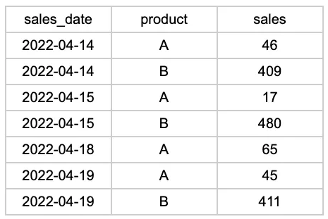 生成或选择唯一日期生成或选择唯一产品交叉连接(笛卡尔积)1&2的所有组合将第3步的结果与原始数据进行外连接                            复制WITH GLOBAL_SPINE AS (                        SELECT                        ROW_NUMBER() OVER (                        ORDER BY                        NULL                        ) as INTERVAL_ID,                        DATEADD(                        day,                        (INTERVAL_ID - 1),                        2020-01-01T00:00 :: timestamp_ntz                        ) as SPINE_START,                        DATEADD(                        day, INTERVAL_ID, 2020-01-01T00:00 :: timestamp_ntz                        ) as SPINE_END                        FROM                        TABLE (                        GENERATOR(ROWCOUNT => 1097)                        )                        ),                        GROUPS AS (                        SELECT                        product,                        MIN(sales_date) AS LOCAL_START,                        MAX(sales_date) AS LOCAL_END                        FROM                        My_First_Table                        GROUP BY                        product                        ),                        GROUP_SPINE AS (                        SELECT                        product,                        SPINE_START AS GROUP_START,                        SPINE_END AS GROUP_END                        FROM                        GROUPS G CROSS                        JOIN LATERAL (                        SELECT                        SPINE_START,                        SPINE_END                        FROM                        GLOBAL_SPINE S                        WHERE                        S.SPINE_START >= G.LOCAL_START                        )                        )                        SELECT                        G.product AS GROUP_BY_product,                        GROUP_START,                        GROUP_END,                        T.*                        FROM                        GROUP_SPINE G                        LEFT JOIN My_First_Table T ON sales_date >= G.GROUP_START                        AND sales_date < G.GROUP_END                        AND G.product = T.product;1.2.3.4.5.6.7.8.9.10.11.12.13.14.15.16.17.18.19.20.21.22.23.24.25.26.27.28.29.30.31.32.33.34.35.36.37.38.39.40.41.42.43.44.45.46.47.48.49.50.51.52.53.54.55.56.