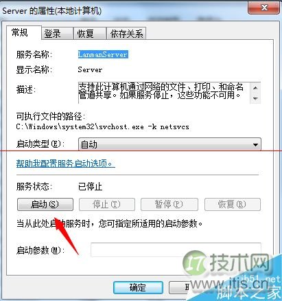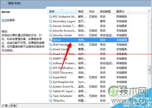 3、系性出细解在弹出的统查服务对话框,找到【server】服务,看账双击进入设置对话框
