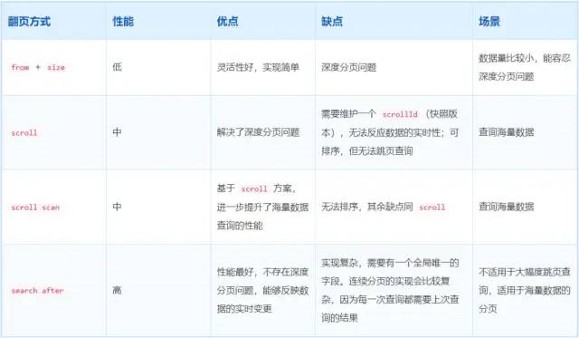 from + size 翻页scroll 翻页scroll scan 翻页search after 翻页