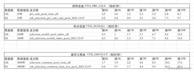 对于在 1000W 量级的底池数据中筛选 10W 的数据的场景,不同方案的耗时如下: