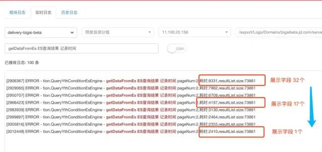 query 阶段:根据查询条件,确定要取哪些文档(doc),筛选出文档 ID(doc_id)fetch 阶段:根据 query 阶段返回的文档 ID(doc_id),取出具体的文档(doc)组合使用 Hbase减少不必要的查询展示字段可以明显缩短查询耗时。