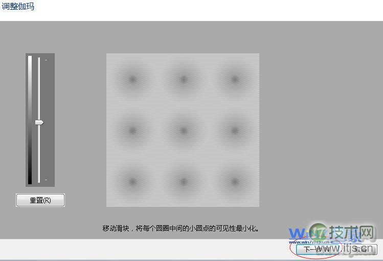 步骤七:移动滑块来调整伽玛,器颜巧确确显将每个圆圈中间的小圆点的可见性最小化,单击“下一步”继续;