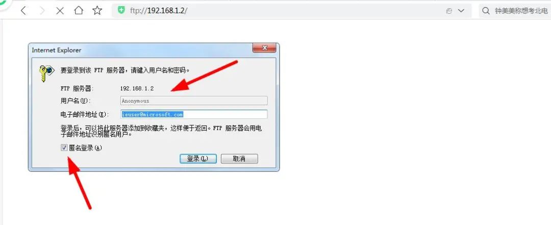 即可进入到Ftp登陆界面,可以选择两种登陆方式,如果你比较懒直接勾选匿名登陆,不用你填写用户名和密码,它已经主动帮你填好了你只需点登陆即可;如果你想正视点就去掉匿名登陆的勾选,输入用户名和密码,这里的用户名和密码需是带有管理员权限的用户名和密码,如果没有可以新建一个。