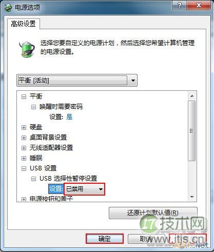 5、源码库这时我们将USB选择性暂停设置禁用掉,然后点击“应用-确定”如下图所示: